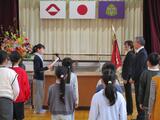 各学年の代表が、修了証書代わりの通知表「あゆみ」と進級祝いのノートを、校長先生から受け取りました。