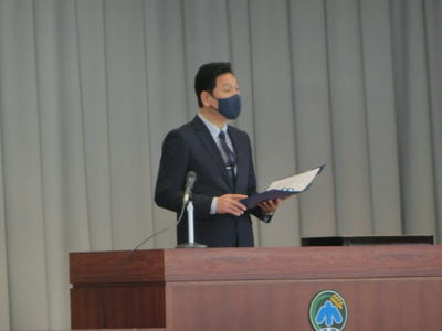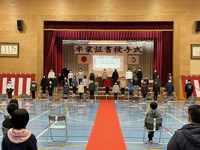 1校時、体育館で令和3年度の修了式が行われました。